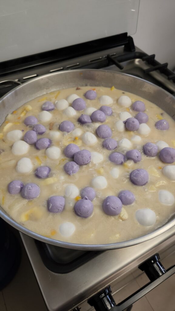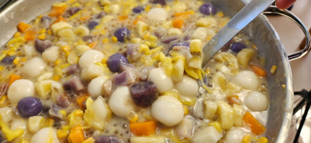 A warm, comforting Filipino dessert made with chewy rice balls, coconut milk, fruits, and root crops—perfect for merienda or rainy days.