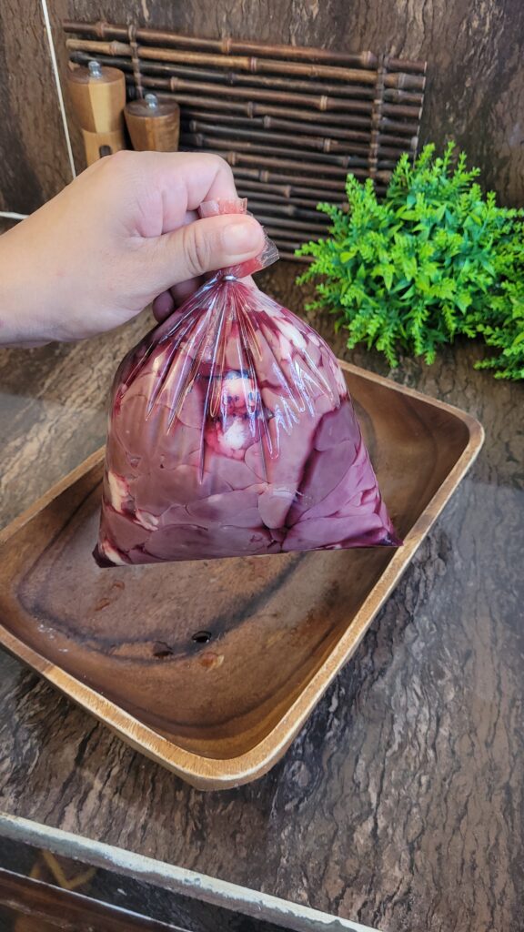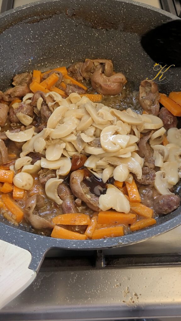 - Heat oil in a pan. Fry the marinated gizzard for 3 minutes.