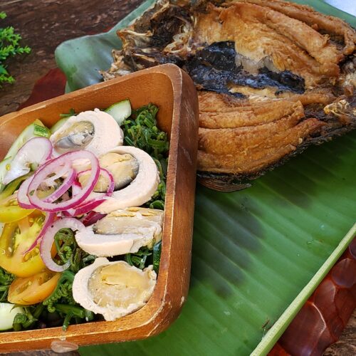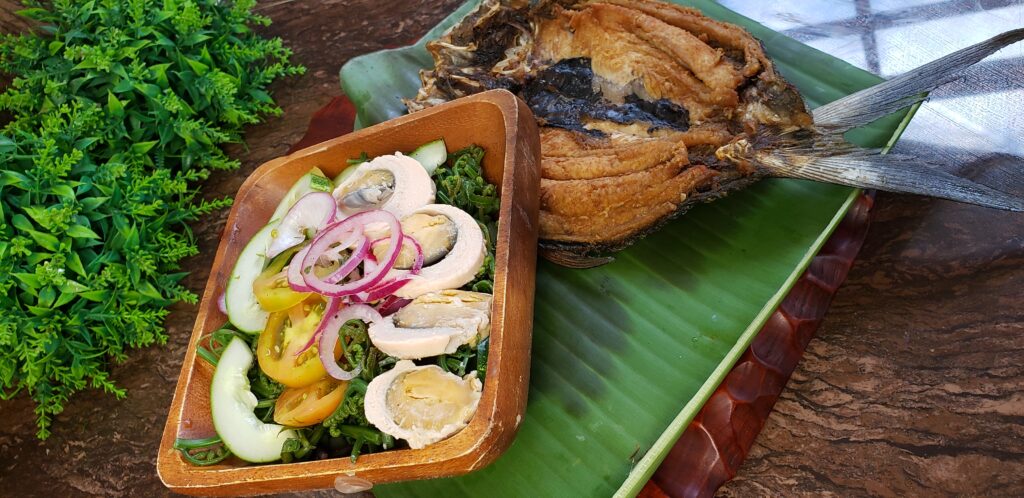 A refreshing and healthy fern leaf salad paired with crispy fried bangus and tangy vinaigrette dressing.