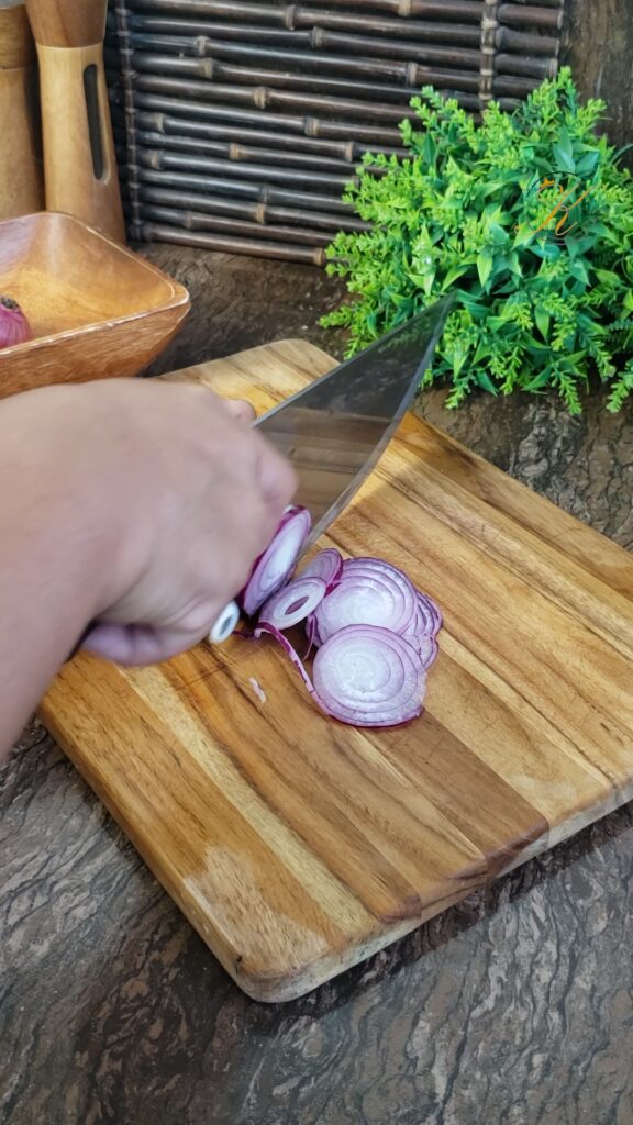 • Red onions add a slight sweetness and vibrant color to the salad.