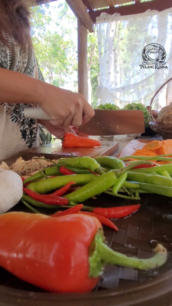 - Arrange carrots, garlic cloves, long green peppers, Thai chilies, and bangus slices alternately in layers.
