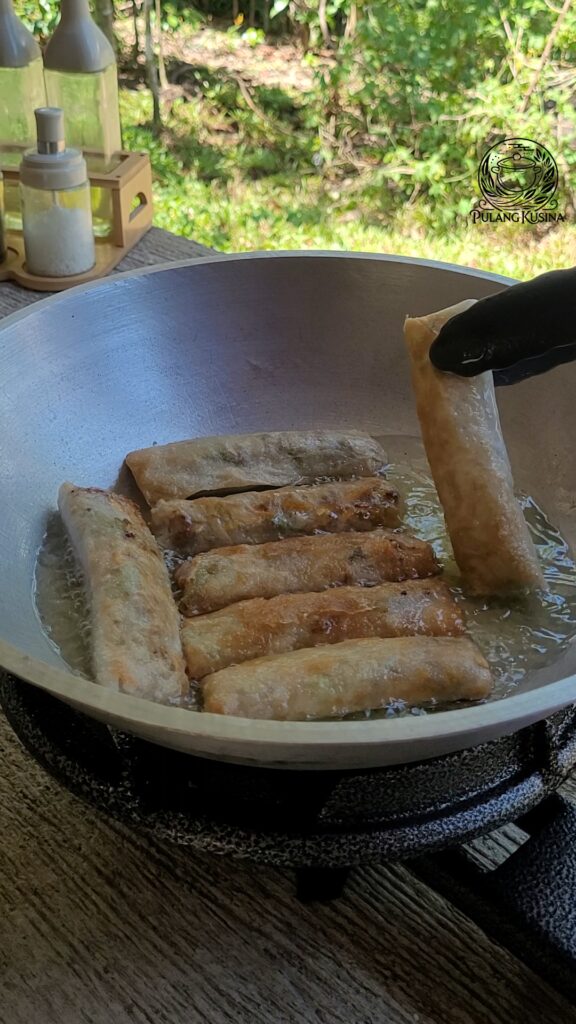 - Heat enough oil for deep frying. Fry lumpia in batches until golden brown and crisp.